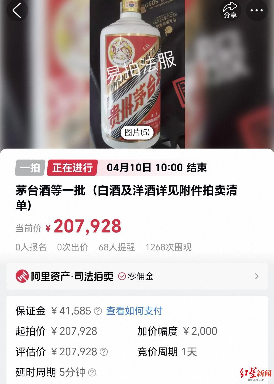 4月9日互联网股票配资网,海南省第一中级人民法院在阿里司法拍卖平台上对一批茅台酒和洋酒等进行整体拍卖,起拍价207928元,这也是该批酒的评估价。红星新闻注意到,开拍5个小时后,仍无人报名出价,此次拍卖将于4月10日上午10时结束(延时除外)。